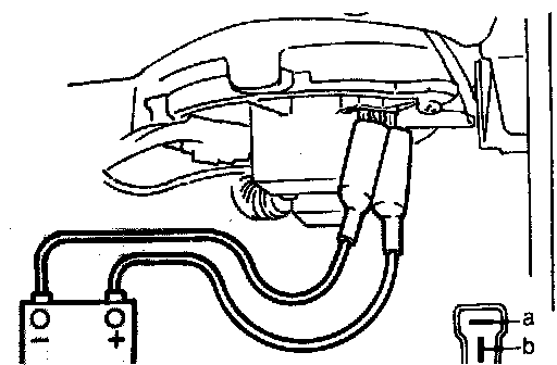 3. Check that the blower fan motor runs when connecting battery voltage to terminal a and grounding terminal b.