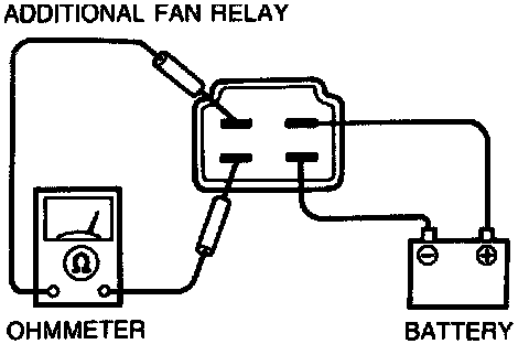 1. Connect the additional fan relay, battery, and an ohmmeter as shown in the figure.