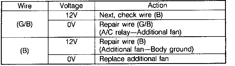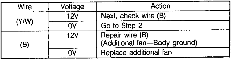 5. Battery voltage is applied to additional fan and fan operates.