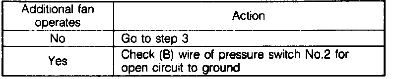 Symptom: Additional (Condenser) Fan Does Not Operate.