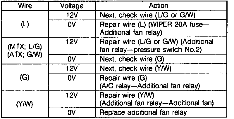 4. Additional fan relay is magnetized and contact is closed. (except Non-Turbo with MTX)