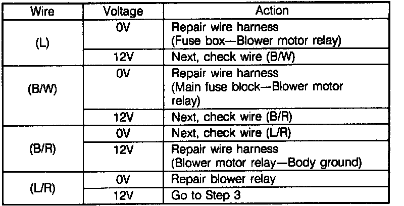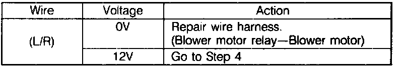 2. Measure the voltage at the terminal-wires of the blower motor relay connector.