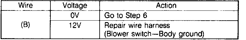 3. Measure the voltage at terminal-wire (B) of the blower switch connector.