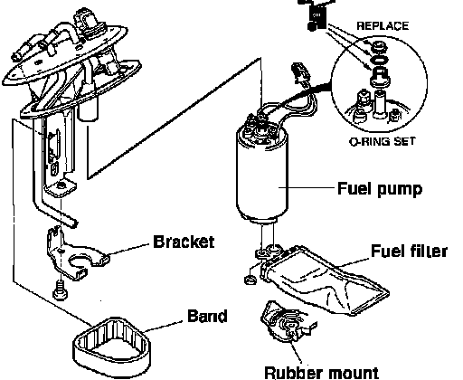 While engine is running, pump runs constantly. Fuel delivery system is a loop, with fuel not used by the engine routed back to the tank. When ignition is switched on, ECU runs pump for about 2 seconds to pressurize system in preparation for starting.