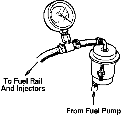 5. Observe fuel pressure on gauge (maximum fuel pump pressure).