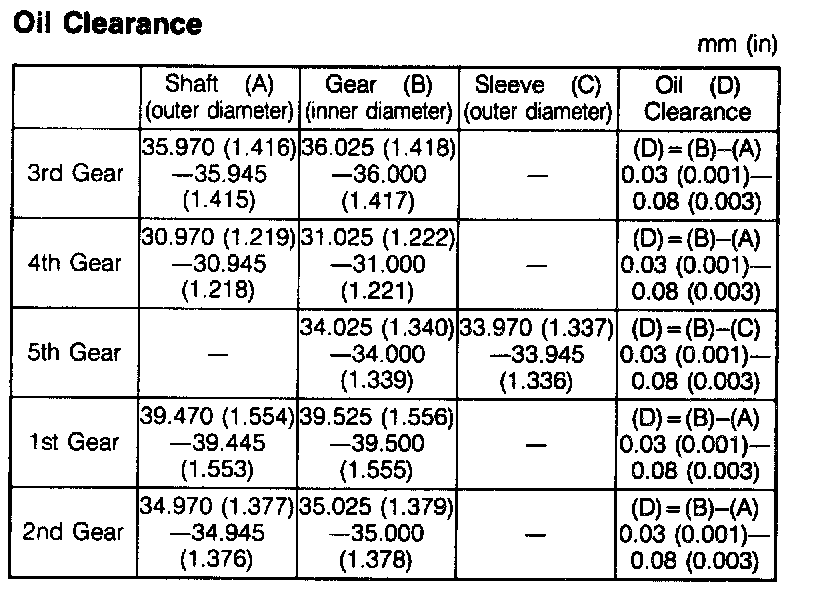 Primary shaft gear runout: 0.05mm (0.002 in) max.