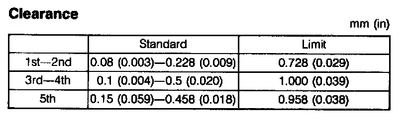 - if the clearance is less than specified, replace the synchronizer ring or gear.