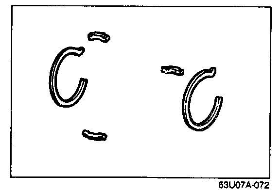 - Press the synchronizer ring uniformly against the gear and measure around the circumference.