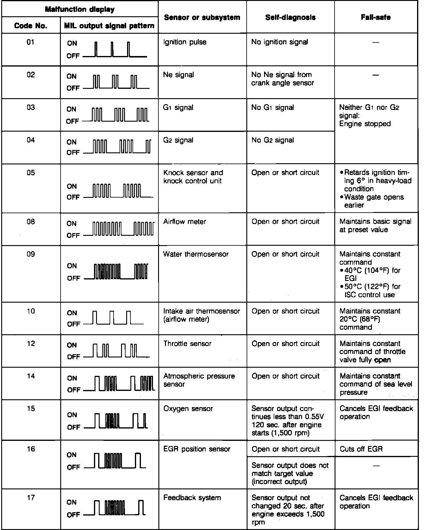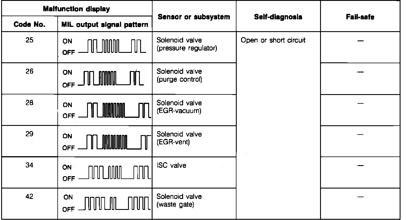 Malfunction Code Chart (Part 1):