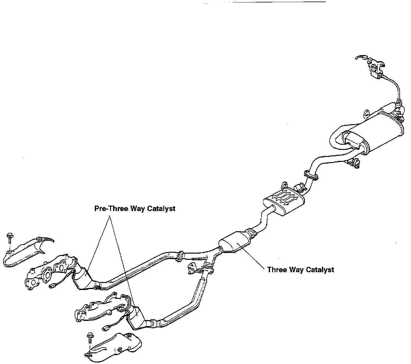 Installed as part of exhaust system. Collector that joins pipes from either cylinder bank is manufactured as part of the converter. (Fig. 3)