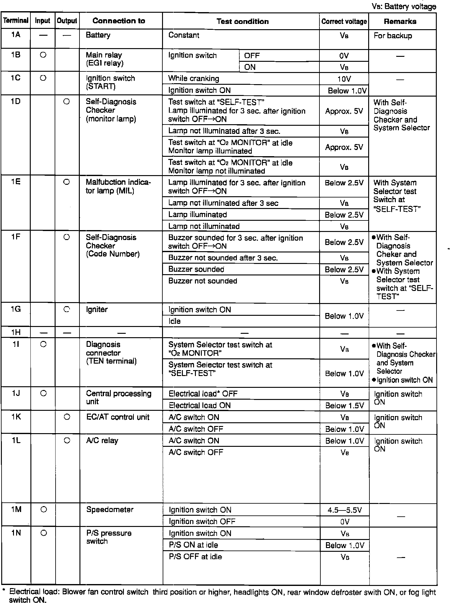 ECU TERMINAL VOLTAGE CHARTS