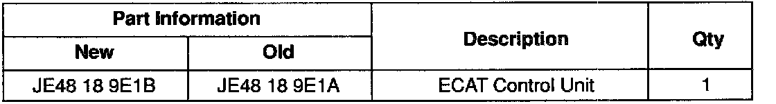 If the above symptom occurs, replace the control unit with one listed in the Parts Information section of this bulletin. Removal and installation procedures are outlined in section K of the workshop manual.