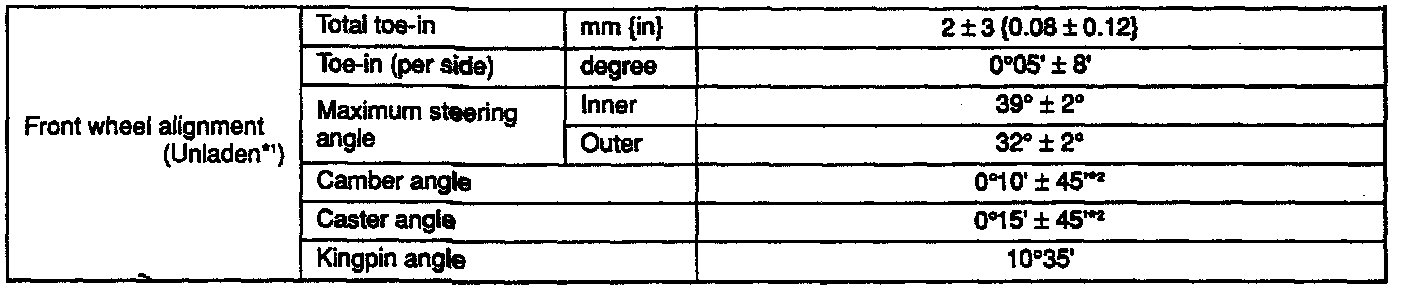 SPECIFICATION TABLEFront Wheel Alignment Specifications: