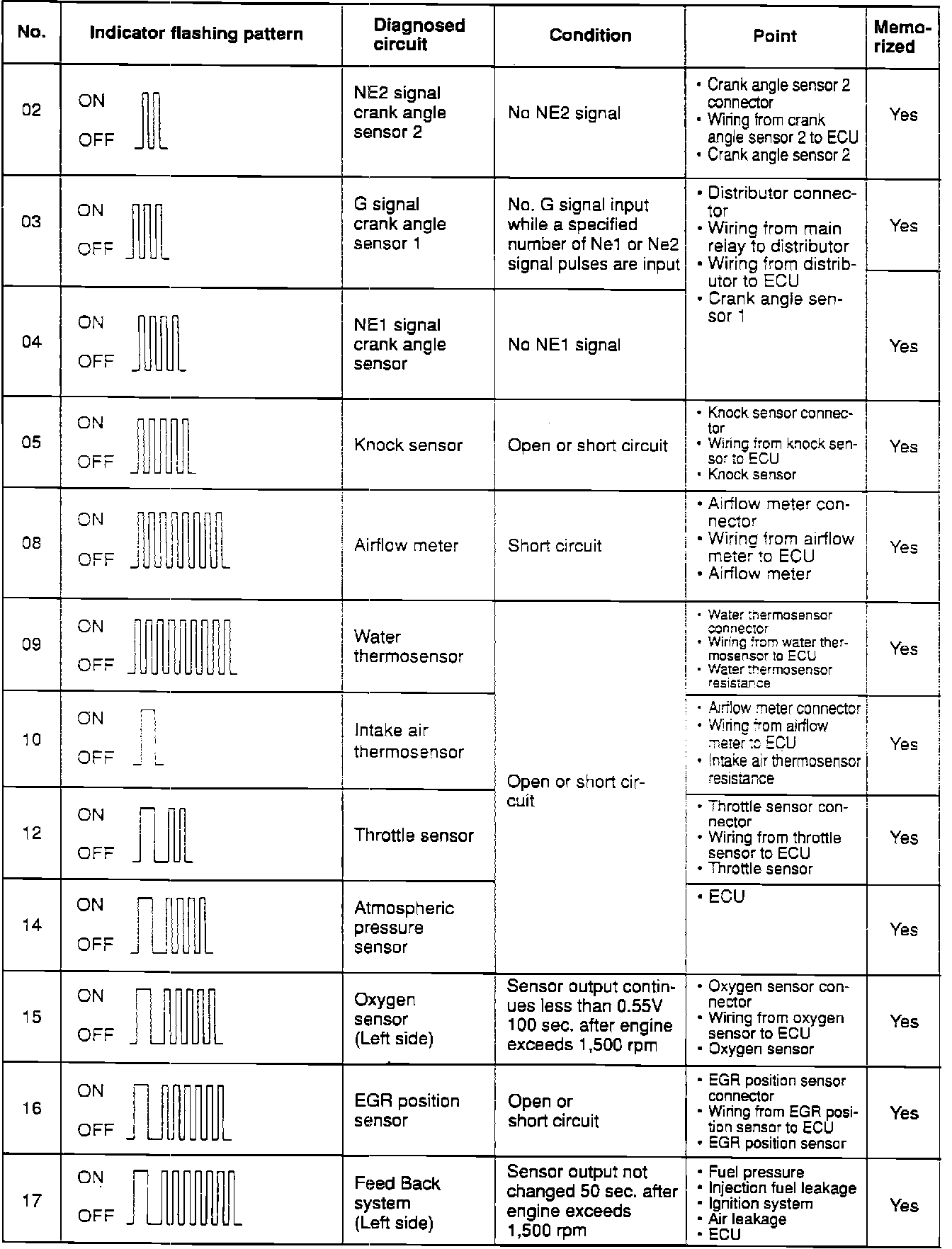 Malfunction Codes 02 - 17: