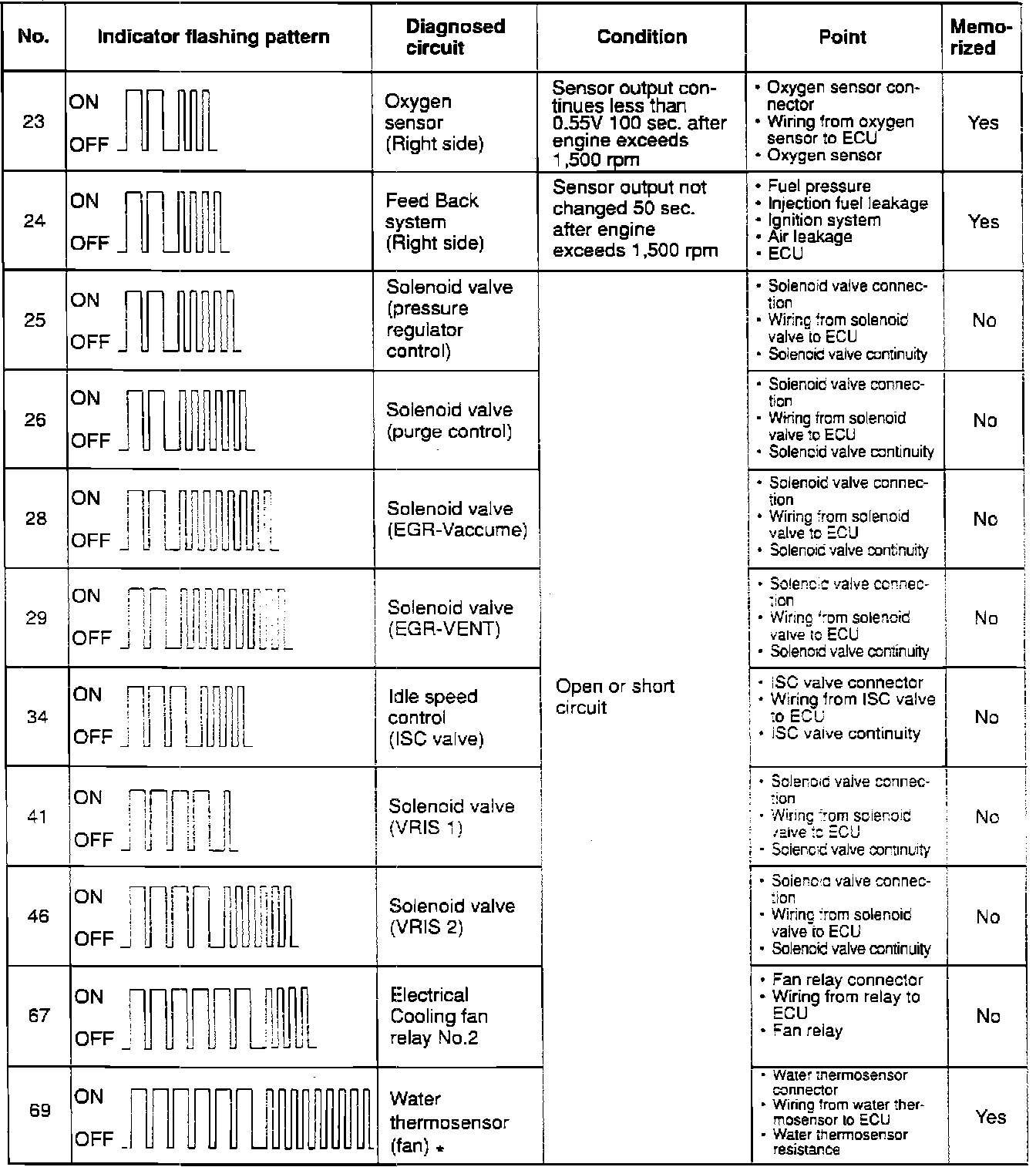Malfunction Codes 23 - 69: