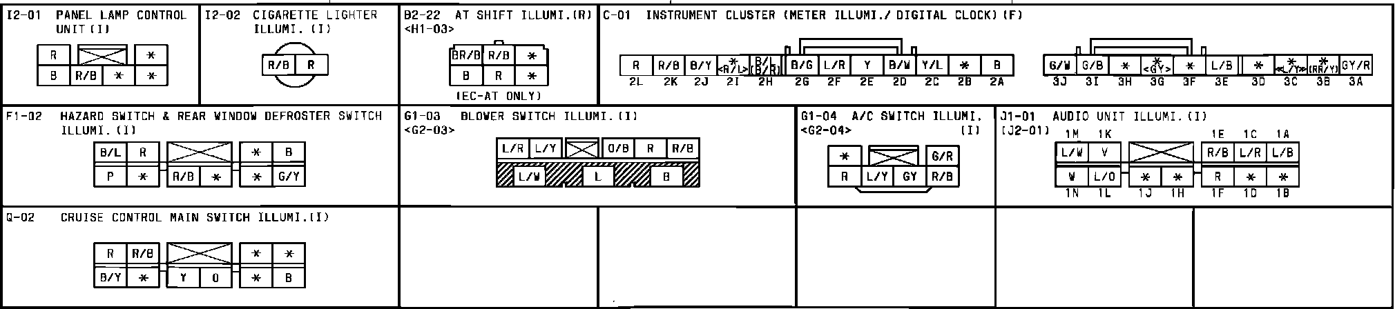 Clock And Illumination Lamps. Connector Identification: