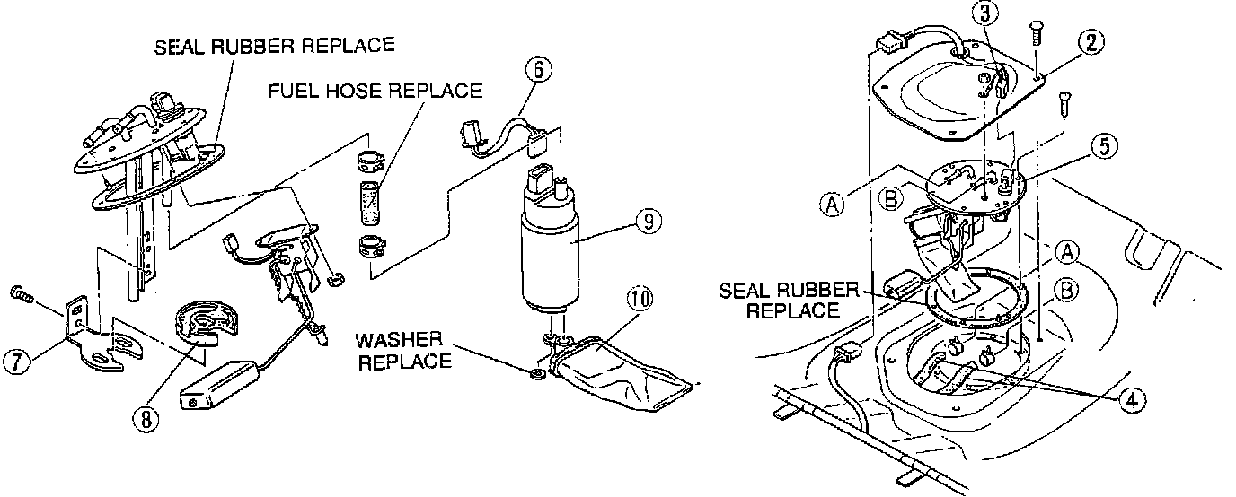 3. Disconnect fuel hoses and electrical connector from tank unit.