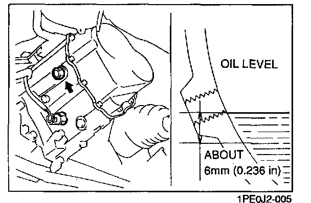 2. Verify that the oil is at near the bottom of the plug port.