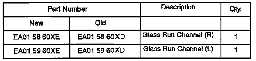 Frequent opening and closing of the driver or passenger windows may cause the glass run channel to slide up the sash and gather at the top rear corner of the window. This results wrinkles or sagging in that area (see illustration below). To prevent this condition, the glass run channel has been attached to the window sash with butyl tape. If this occurs, follow the procedures in this bulletin to repair the glass run channel.