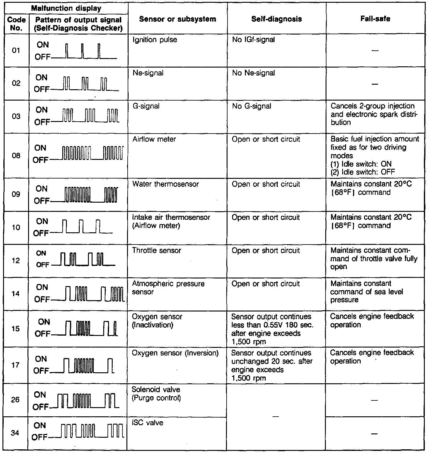 Digits in tens position of service code represent the number of times light is "ON" 1.2 seconds during one cycle. The light goes "OFF" for 1.6 seconds between its long and short pulses.
