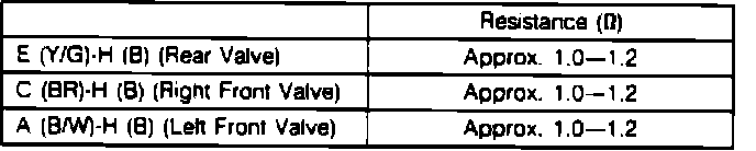 4. If resistance is as specified, check wiring harness from hydraulic unit to ABS control unit.