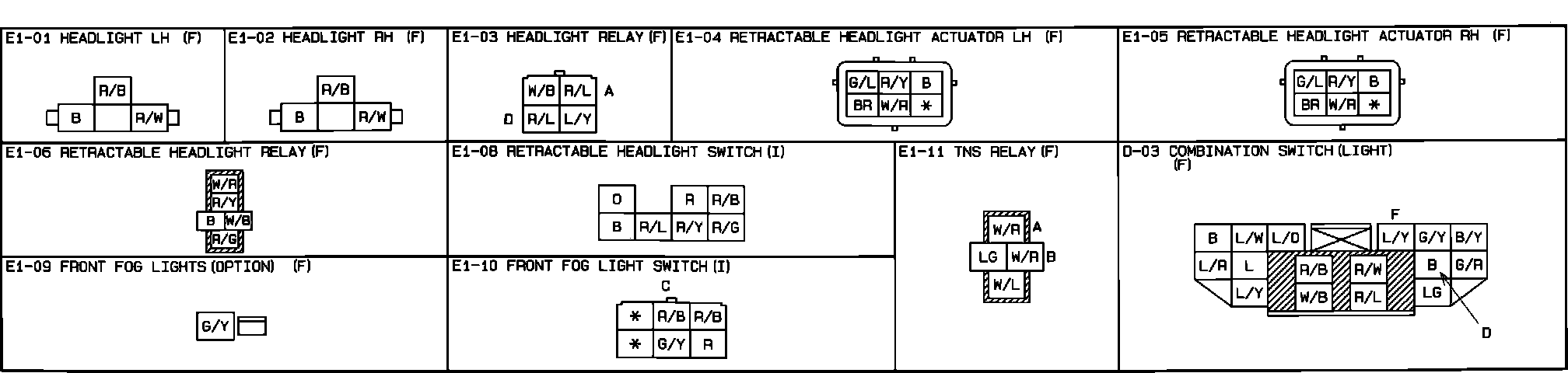 Front Fog (Optional), Headlights And Retractable Headlight System. Connector Identification: