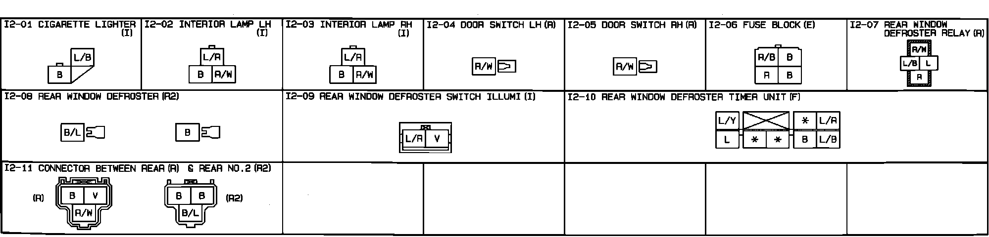 Interior Lamps. Cigar Lighter And Rear Window Defogger. Connector Identification: