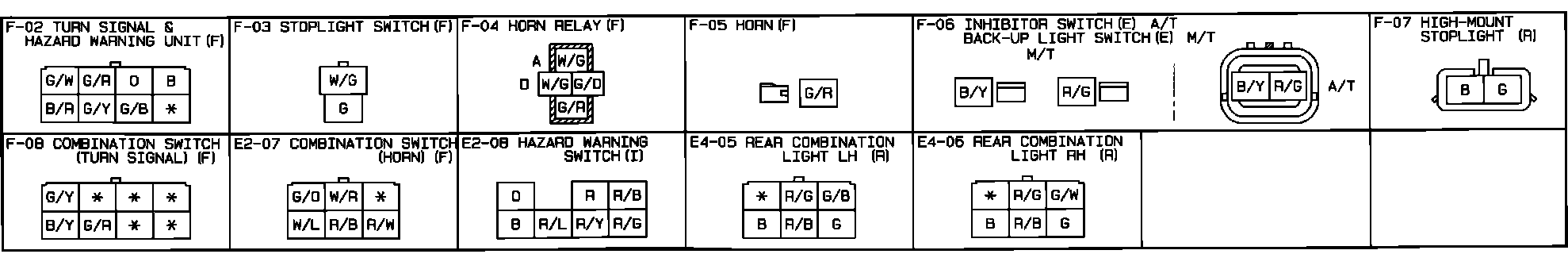 Back-Up, Horn, Turn, Hazard, Stop And High Mount Stoplights. Canada. Connector Identification: