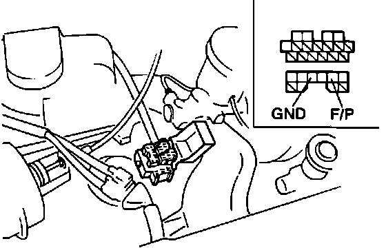 1. Connect a jumper wire across diagnosis connector terminals "F/P" and "GND."