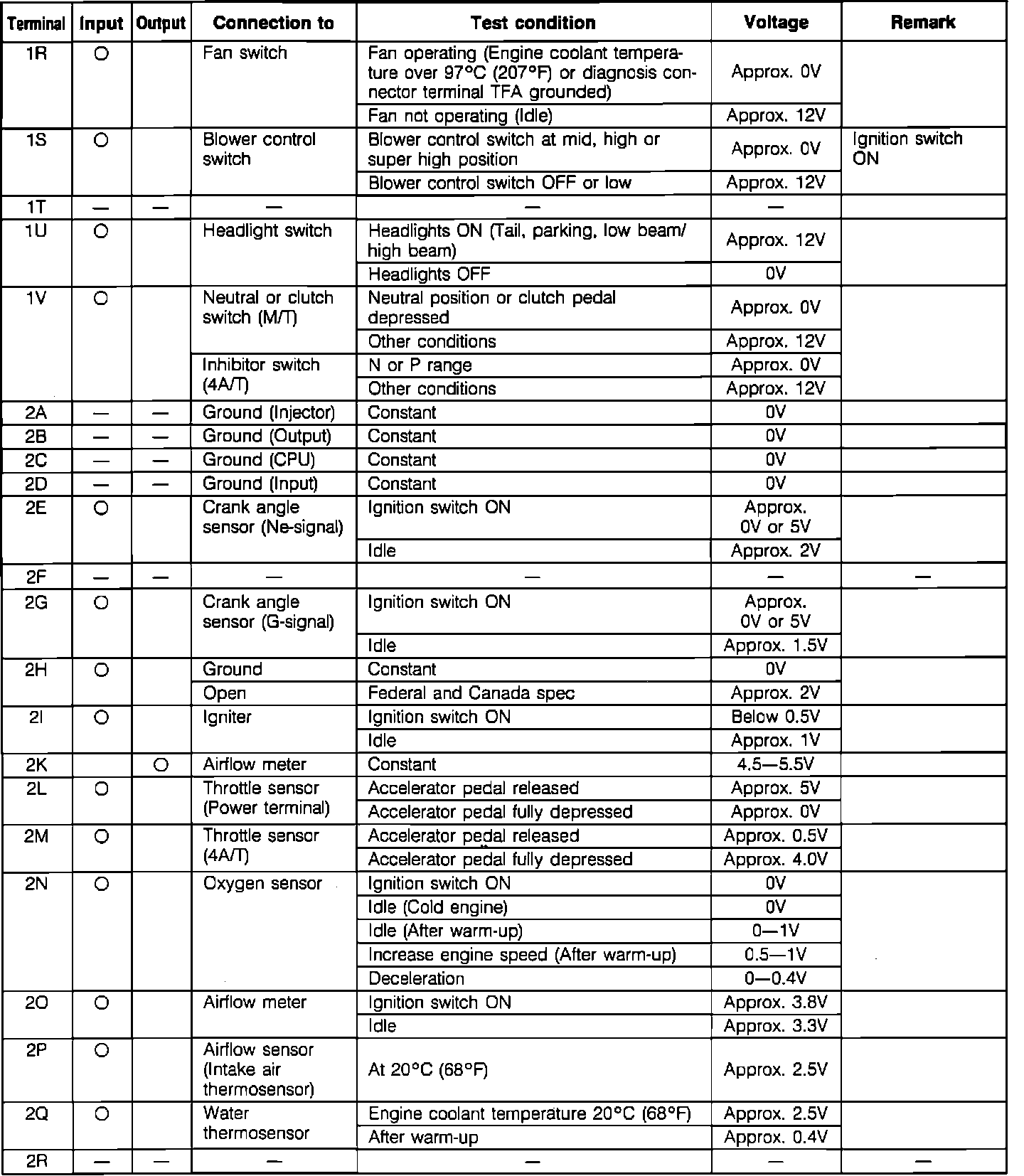 ECU Pin Voltage Chart (Part 2):