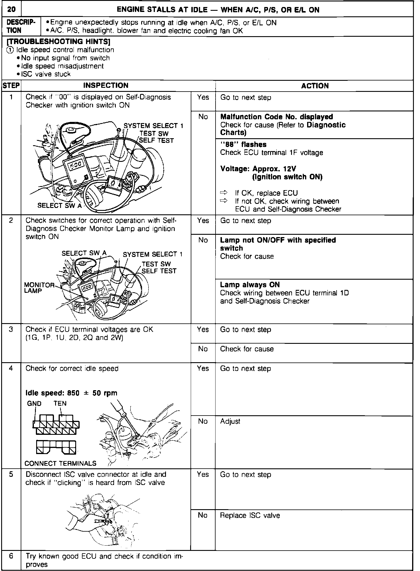 Stalls At Idle (With A/C, P/S, Or E/L On):