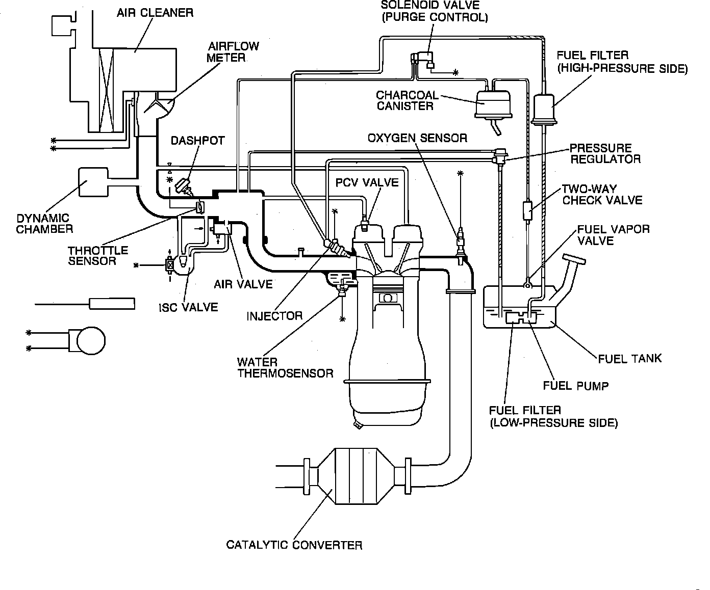 The primary fuel and intake components are covered in this section. For information regarding electronically controlled devices and the ECU, refer to Computers and Control Systems.