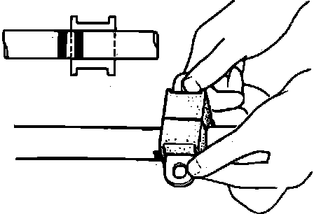 b. Align bushing with installation mark on stabilizer, Fig. 9.