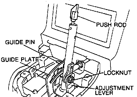 4. Adjust lever so that clearance between guide plate and guide pin in ``P'' range with pushrod lightly depressed is as shown in Fig. 7, then torque locknut to 13-18 ft. lbs.