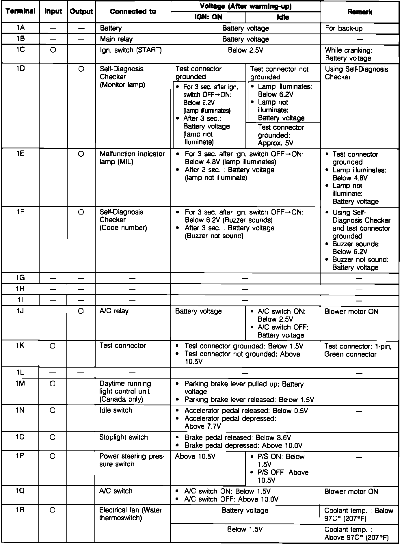 ECU Pin Voltage Chart (Part 1):
