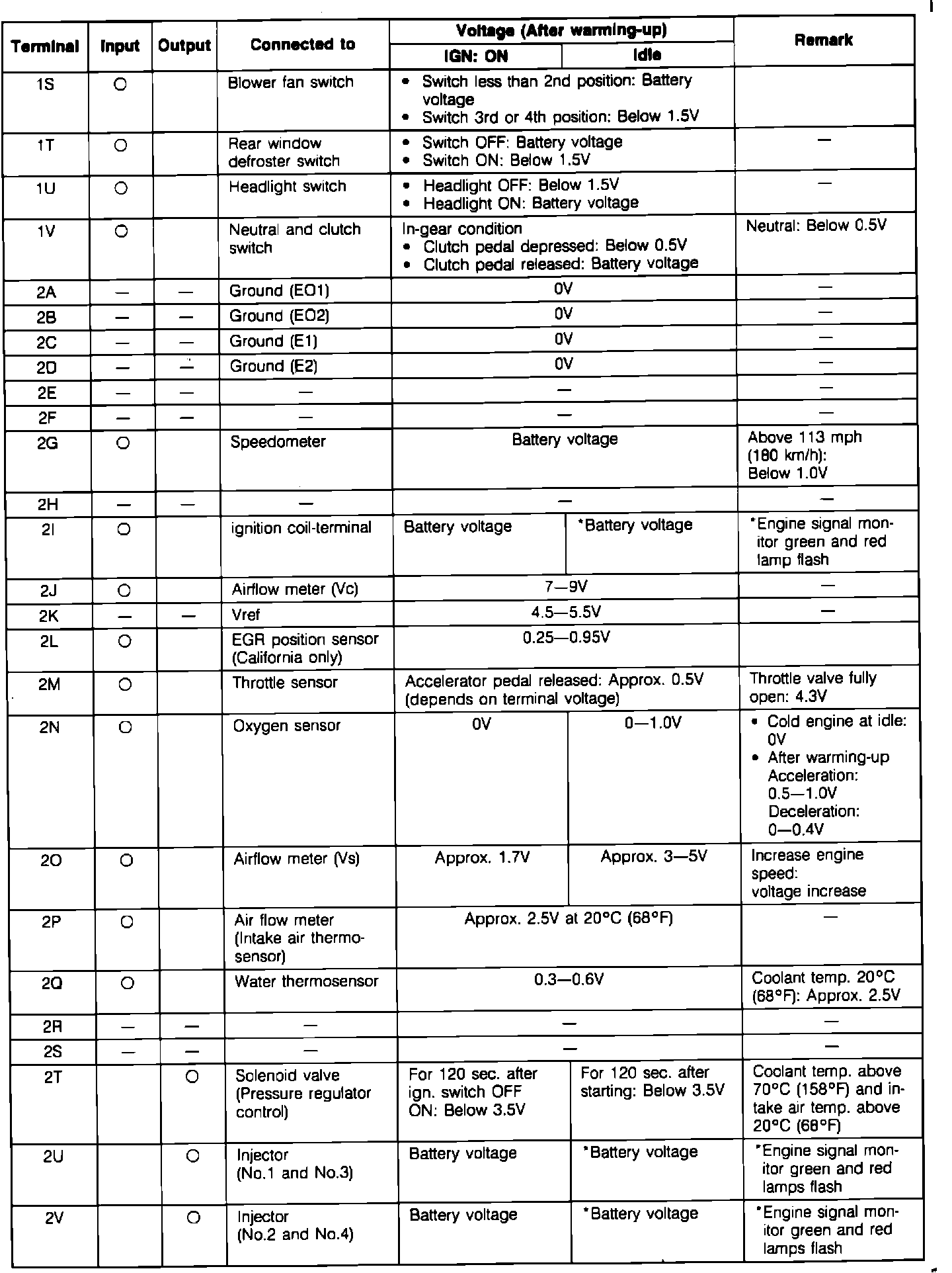 ECU Pin Voltage Chart (Part 2):