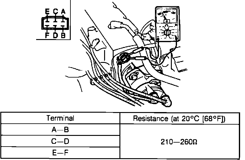 2. Check resistance across connector terminals (distributor side) as described on image chart.