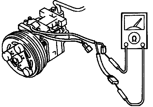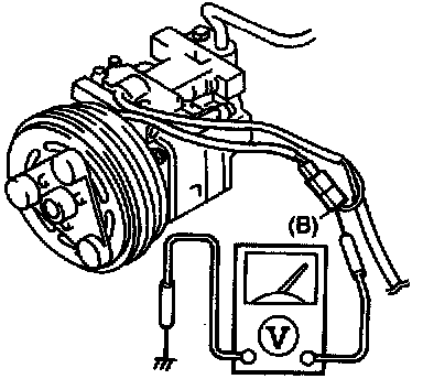 Magnetic clutch does not operate. (Condenser fan operates normally.)Step 1 Measure voltage at compressor connector