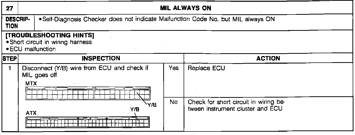 Malfunction Indicator Lamp (MIL) Always on