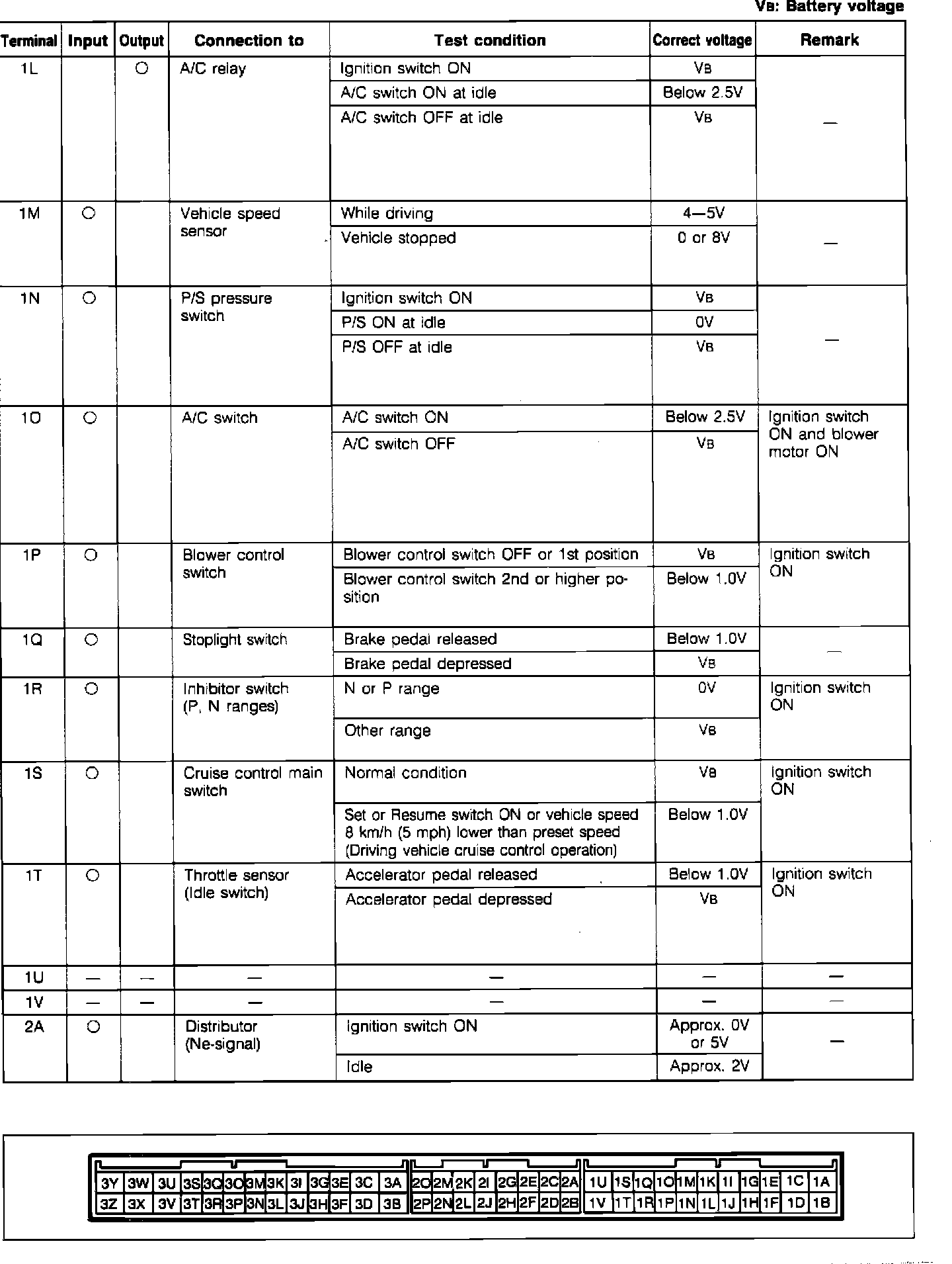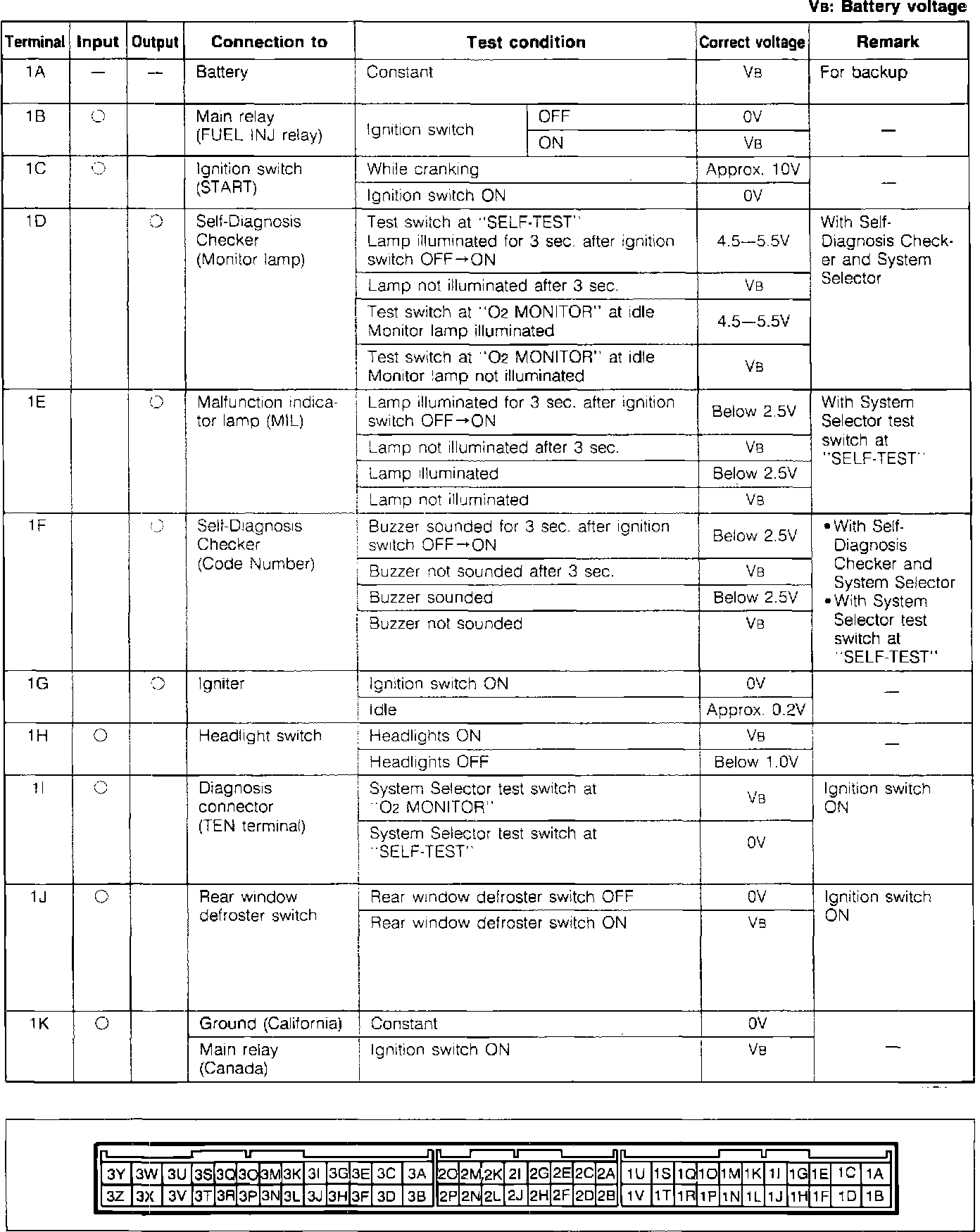 1. If factory test equipment is not available, use only digital volt/ohm meter with minimum 10Meg ohms internal impedance for testing ECU terminal voltages.