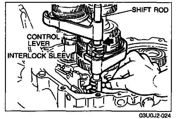 1. Align the ends of the interlock sleeve and of the control lever (arrow). Turn the shift rod counterclockwise.