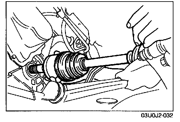 CAUTION: Do not subject the tripod joint to shock when removing the driveshaft.