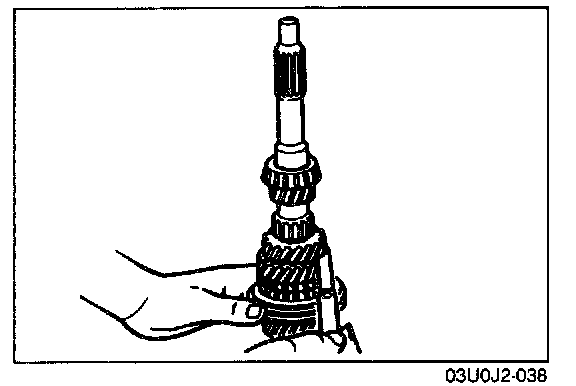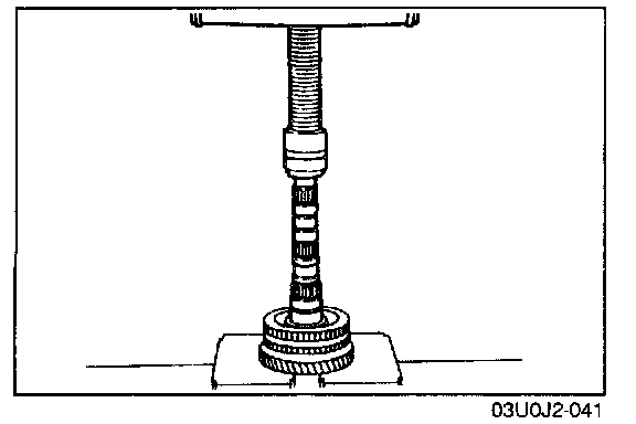 2. Remove the clutch hub assembly (1st/2nd), synchronizer ring (1st), and 1st gear with a press.