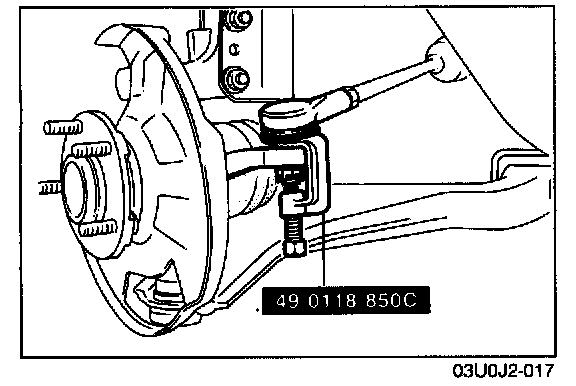2. Loosen the nut and disconnect the tie-rod end with the SST.