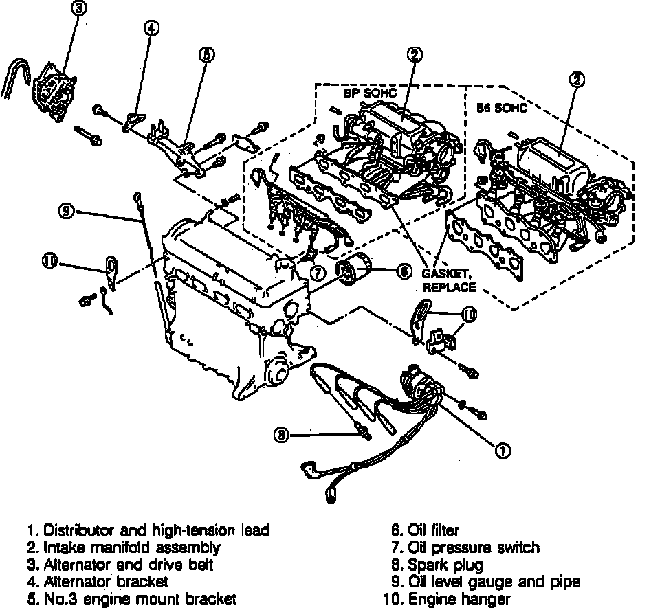 1. On 1990-92 models, remove auxiliary components from engine in numbered sequence, Fig. 51. Place engine on suitable engine stand.