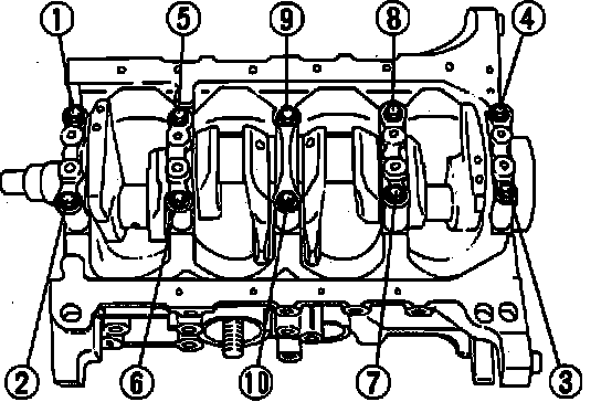Fig. 72 Main Bearing Cap Bolt Loosening Sequence: