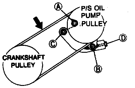 1. Loosen the P/S oil pump bolt (A) and nuts (B) and (C).