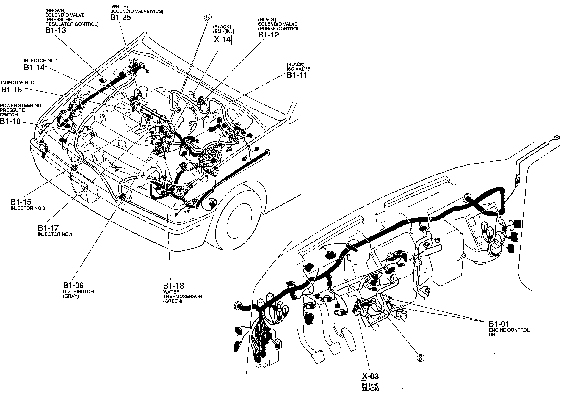 Engine Control System. M/T. Harness And Connector Locations 1 Of 3: