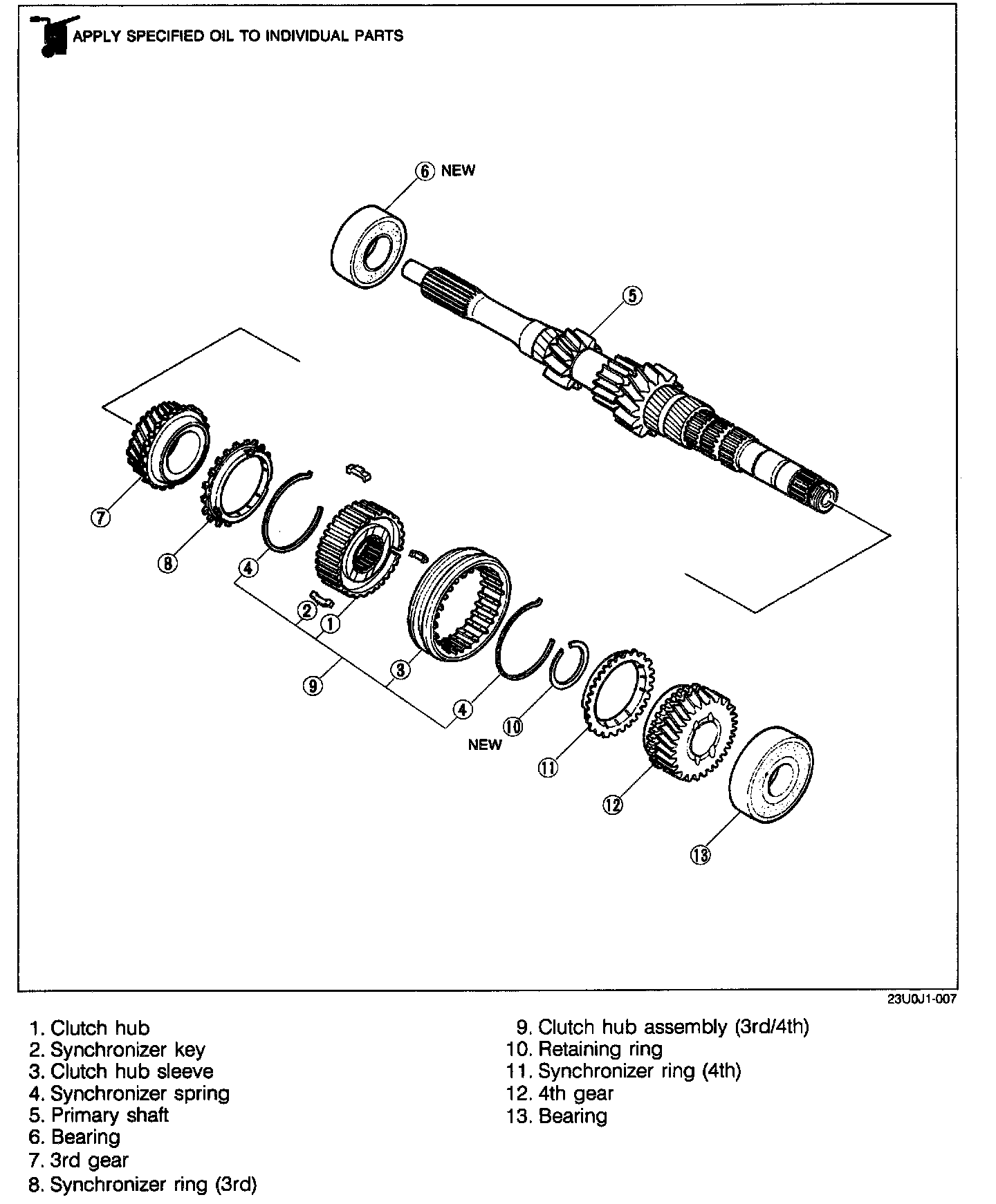 3rd gear, synchronizer ring (3rd), and clutch hub assembly (3rd/4th)