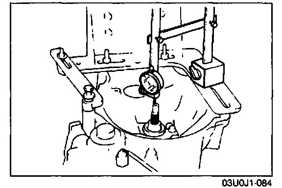 5. Measure the 5th gear thrust clearance with a dial indicator.